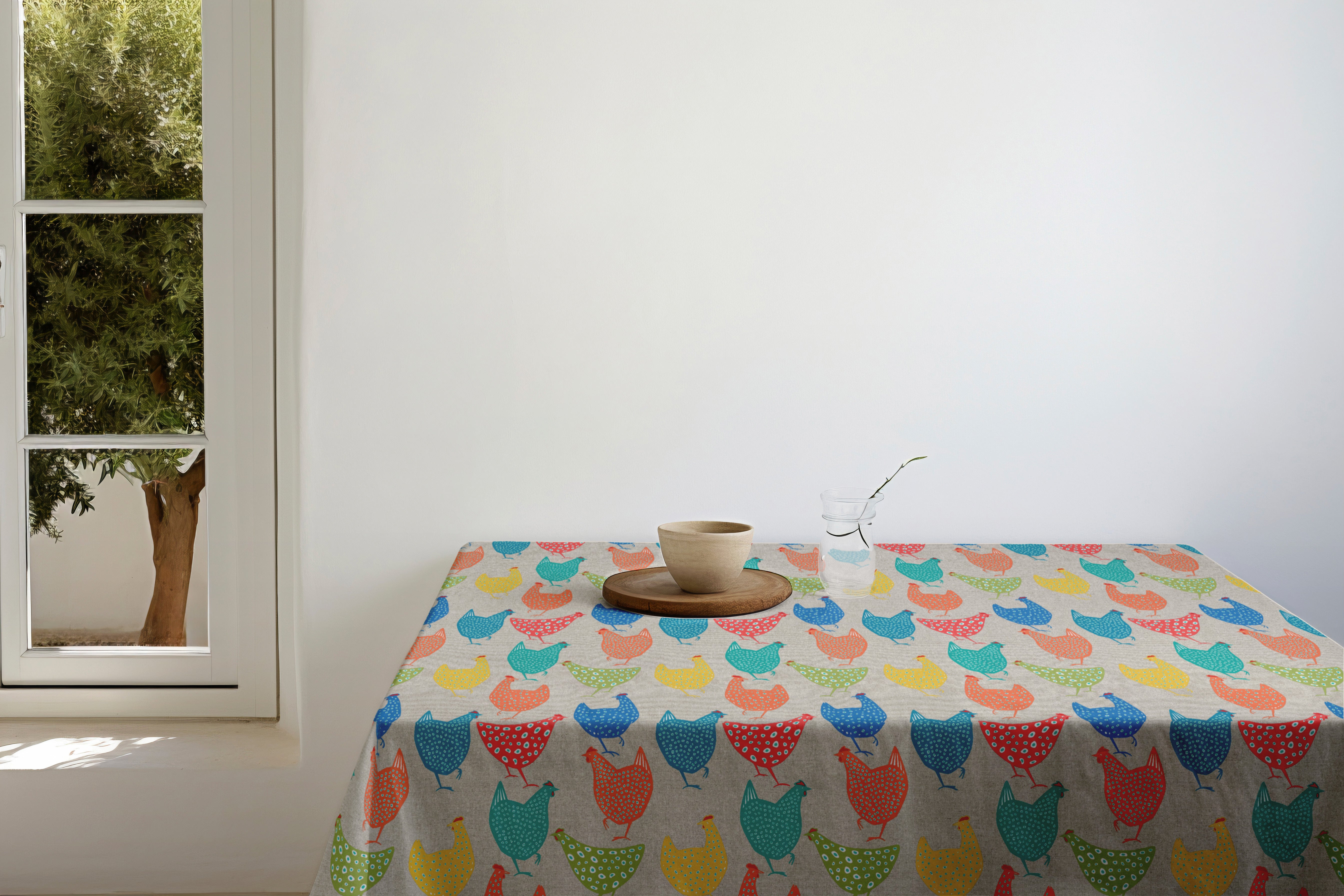 Mantel antimanchas impresión digital gallinas de colores DC 1007