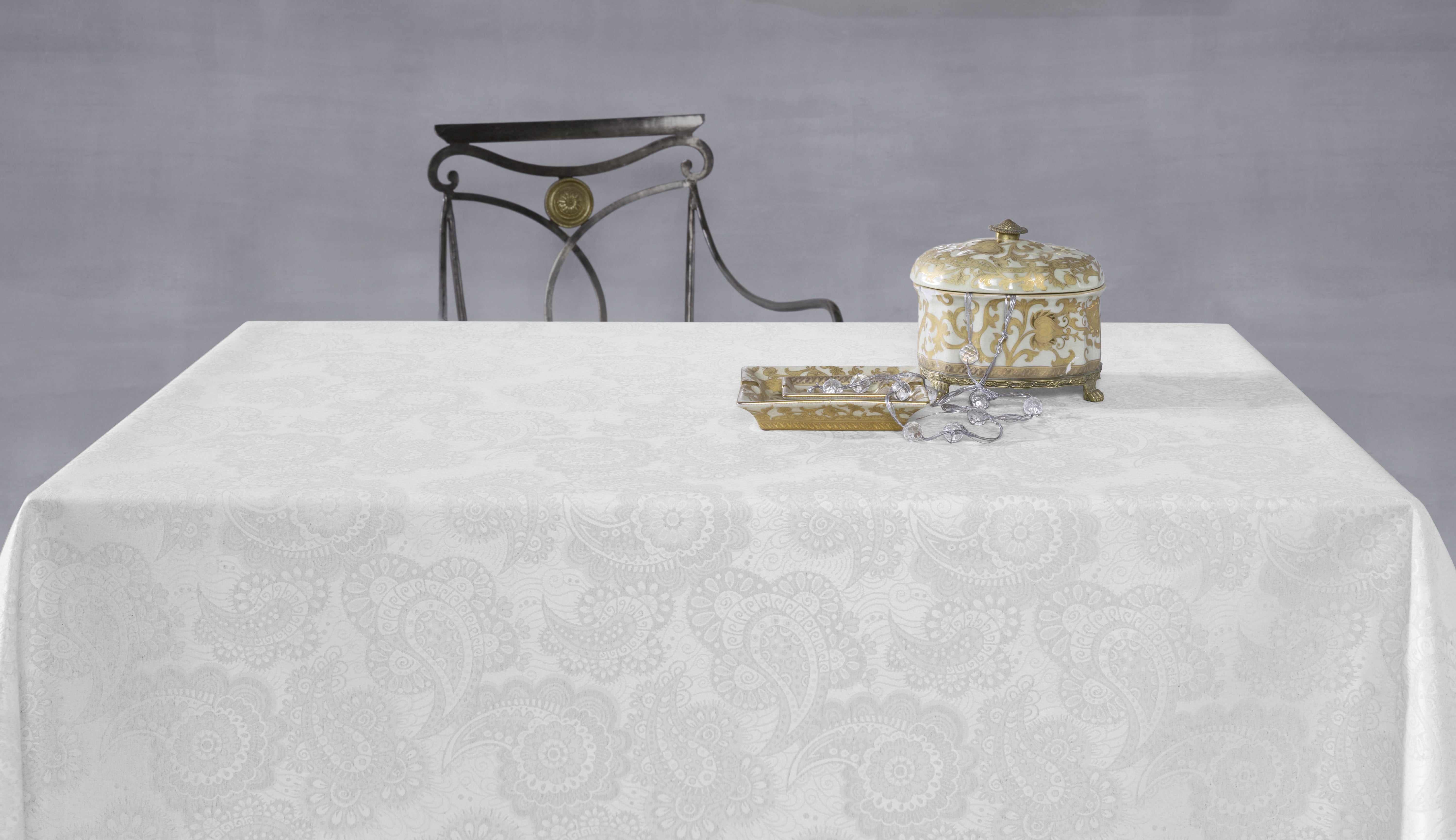 Mantel antimanchas tejido jacquard estampado paisley blanco JC 2011