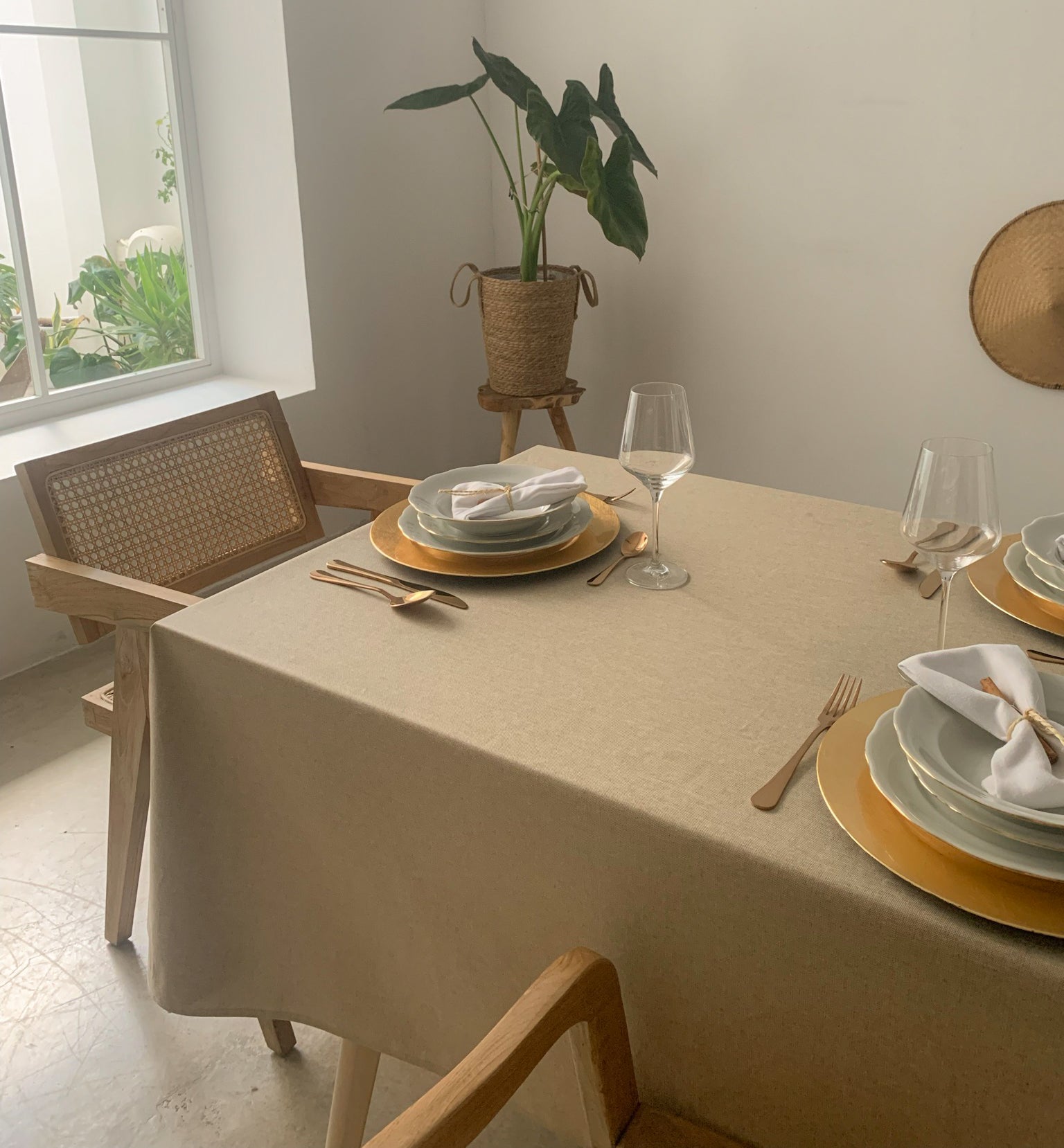 Mantel antimanchas liso beige Vida 2001