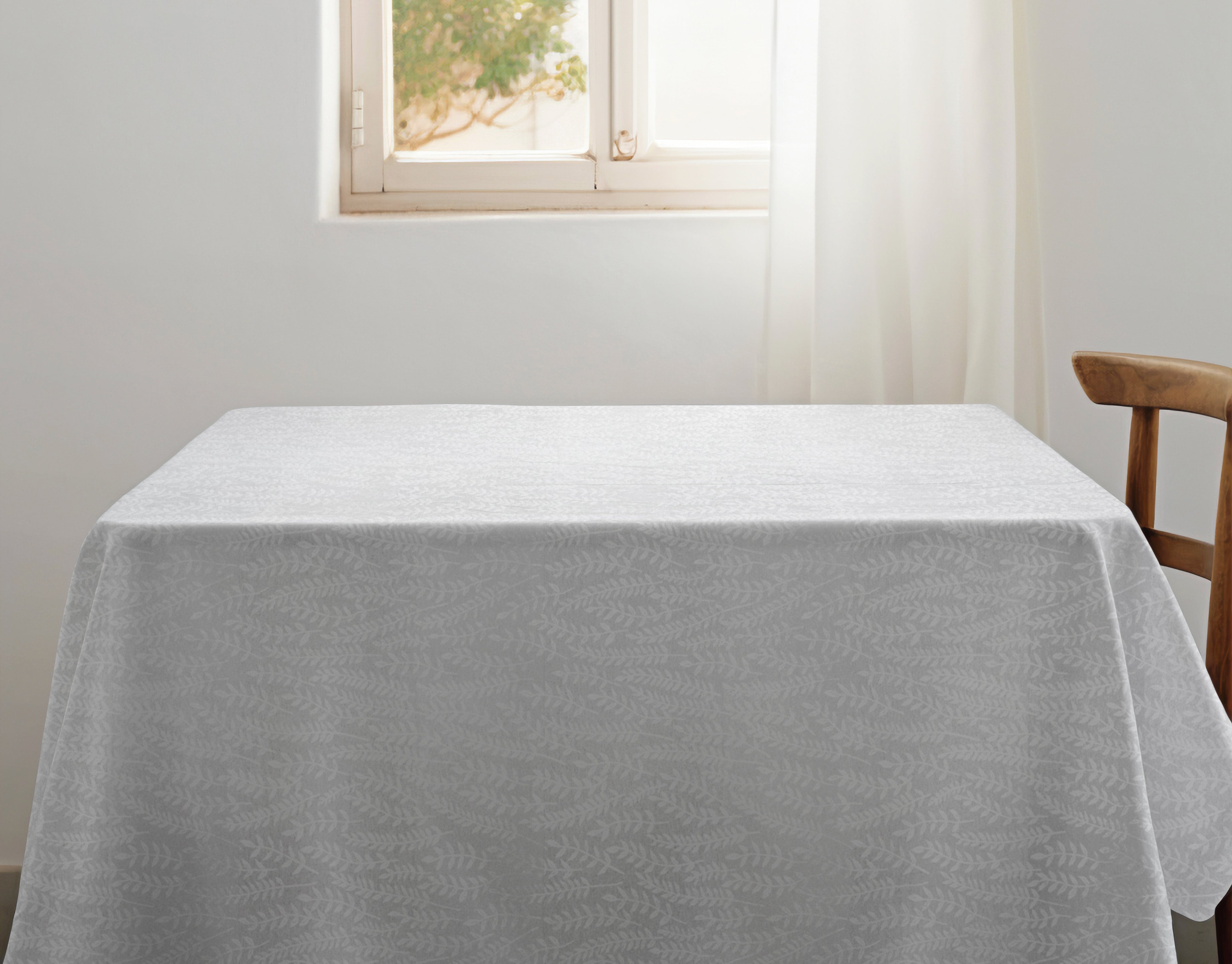 Mantel antimanchas tejido jacquard hojas blanco JC 2018